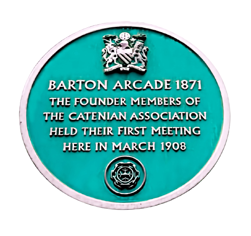 Two years later, it renamed itself ‘The Catenian Association’ taking its name from the Latin ‘catena’ meaning 'chain'. A plaque in Barton Arcade, Manchester acknowledges the beginnings of the ‘Catenian Association’.